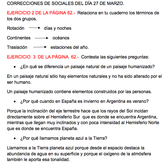 Para que no se nos olvide nada de lo que ya sabemos, vais a buscar la página 62 del libro de Sociales y hacéis en el cuaderno los ejercicios 2 y 3 de esa página.